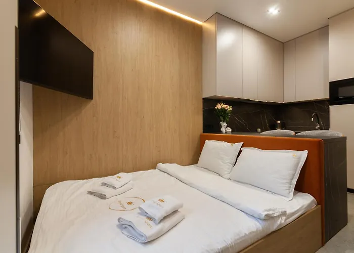Royal Smart Apartment On Shevchenka 73A Str is equipped with self-catering facilities like an electric kettle, a fridge, and glassware, giving guests the independence to prepare their own meals. Royal Smart Apartment On Shevchenka 73A Str is only a 15-minute drive to Lviv Danylo Halytskyi International airport.